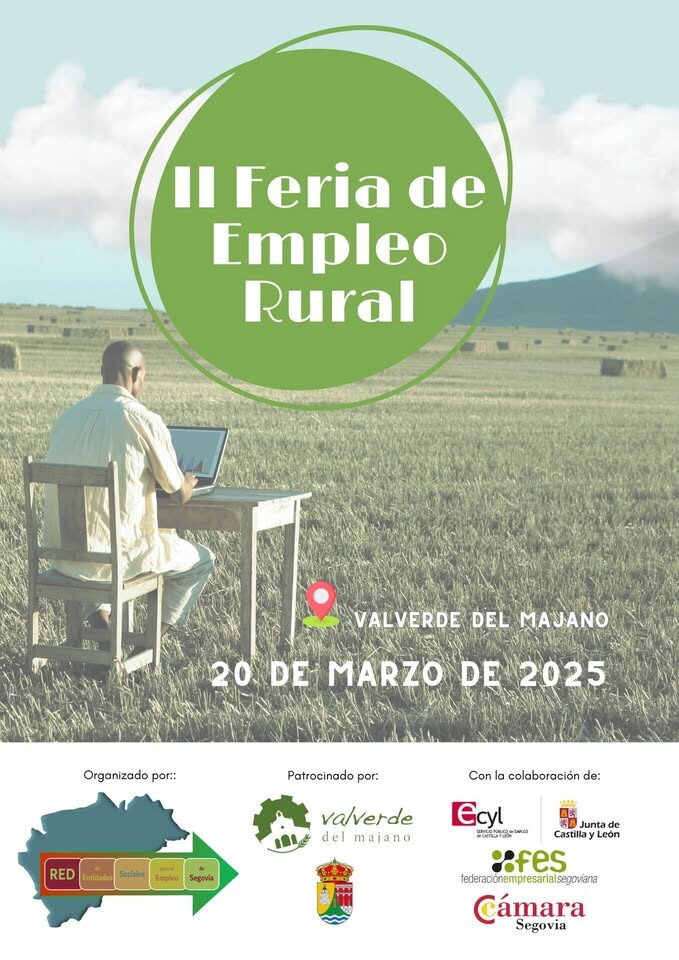 La II Feria de Empleo Rural reunirá en Valverde del Majano a empresas, entidades y profesionales con el objetivo de conectar talento y oportunidades en el territorio. El evento se celebrará el 20 de marzo en el Salón Mazuelos del municipio (Plaza Mayor), de 10:00 a 14:00 horas.