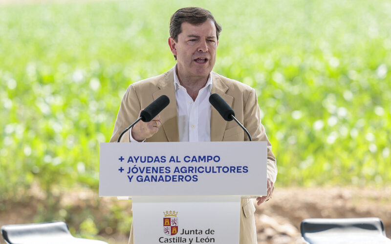 Alfonso Fernández Mañueco, presidente de la Junta, presentó este miércoles en la localidad palentina de Quintana del Puente, durante su visita a una explotación agraria, la nueva convocatoria de ayudas para la incorporación de jóvenes al campo y la modernización de explotaciones, que se publicará mañana jueves en el Boletín Oficial de Castilla y León.