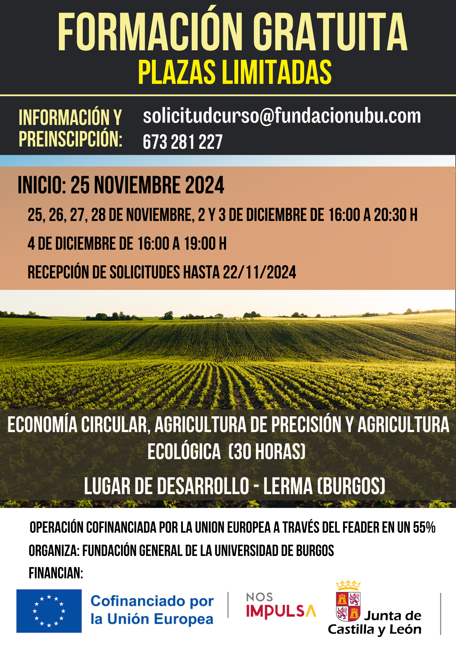 - Entidad: Fundación Universidad de Burgos solicitudcurso@fundacionubu.com 673 281 227