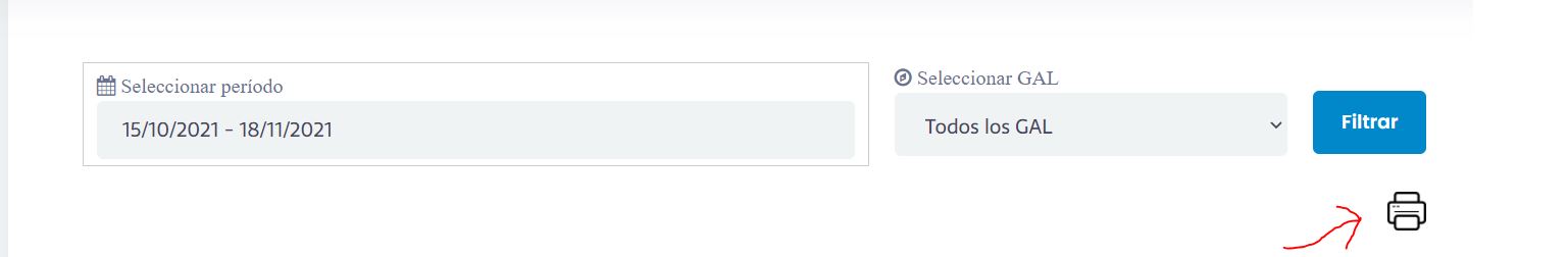 Una vez filtrada la información deseada, se podrá proceder a imprimir o guardar en pdf a través del botón habilitado para ello en la parte superior derecha del panel.