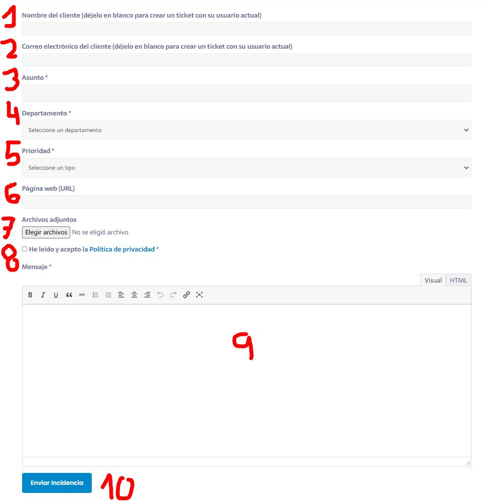 El formulario de una nueva Incidencia está compuesta por: